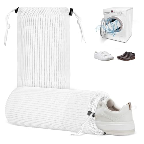 2 Pcs Sac de Lavage pour Chaussures Machine à Laver Sacs à Linge pour Chaussures Réutilisable Sac Linge Nettoyant Chaussure Filet Linge Machine à Laver pour Baskets Protéger Chaussure (blanc)