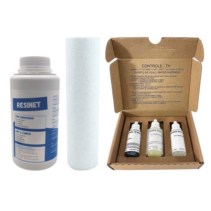 Kit Entretien Adoucisseur Deau - Test Th Avec Nettoyant Résine Et Cartouche Microfibre 93/4