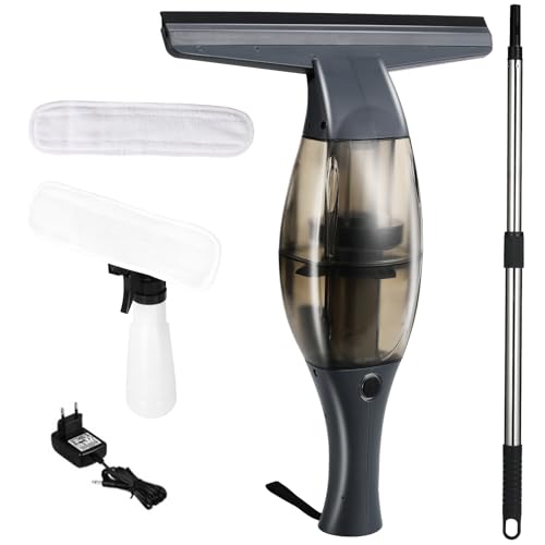 Nettoyeur de vitres électrique sans fil avec manche télescopique, autonomie batterie:40 min,buse d'aspiration 28 cm,vaporisateur avec housse en microfibre pour nettoyage à 360° sans traces à (Noir)