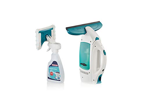 Leifheit Kit aspirateur à vitres Dry & Clean avec manche et mouilleur, lave vitre sans traces, nettoyeur vitre multi usages, aspirateur portable, autonomie jusqu'à 38 minutes