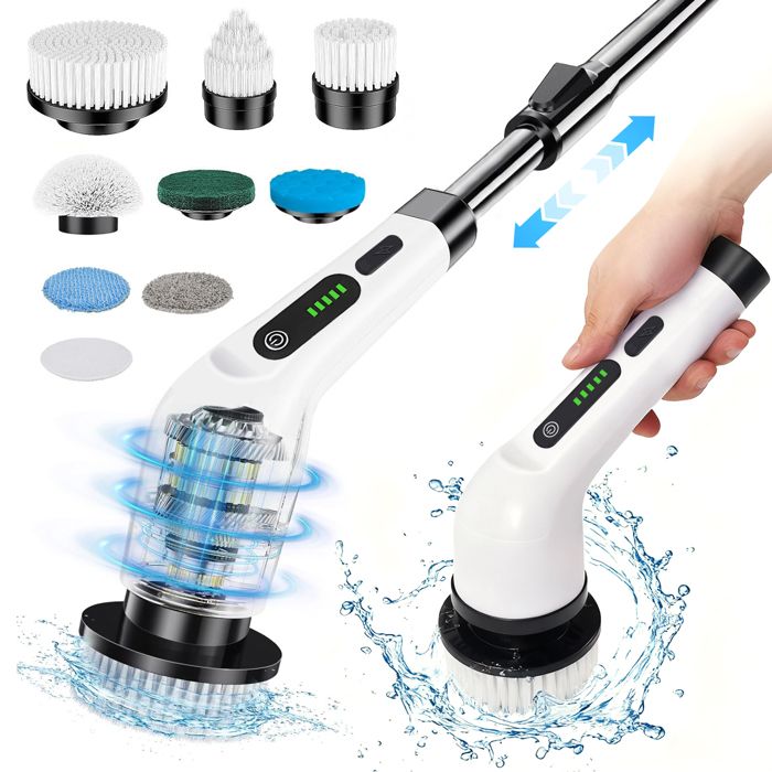 BRRNOO Brosse de Nettoyage électrique sans Fil pour Douche, Salle de Bain, Nettoyeur de Carrelage avec 7 Têtes Remplaçables pour Cuisine, Salle de Bain, Carrelage, Baignoire, évier