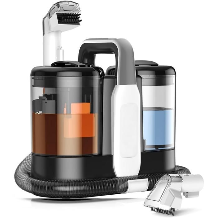 Nettoyeur canapé tissu 17Kpa Shampouineuse Canapé 1.5L+1.2L avec Suceur plat et 1.8m Tuyaux - Nettoyeur pour Tapis Tissus Voiture