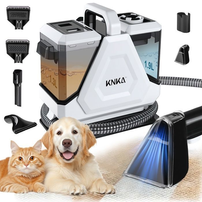 Kitcanis Shampouineuse Nettoyeur Canapé Tissu - 17KPa 78dB 600W Shampouineuse Canape avec 4 Buses Aspirateur pour Tapis, Moquettes, Meubles, Tissus, Voiture & Plus Encore