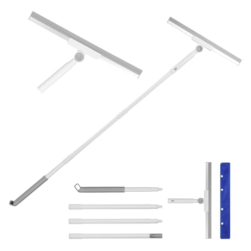 VINATO Raclette de Douche avec Manche Long Réglable (136cm) Nettoyeur Vitre Telescopique Raclette Douche Silicone Lave Vitre pour Sol, Carrelage, Cuisine, Patio, Jardin