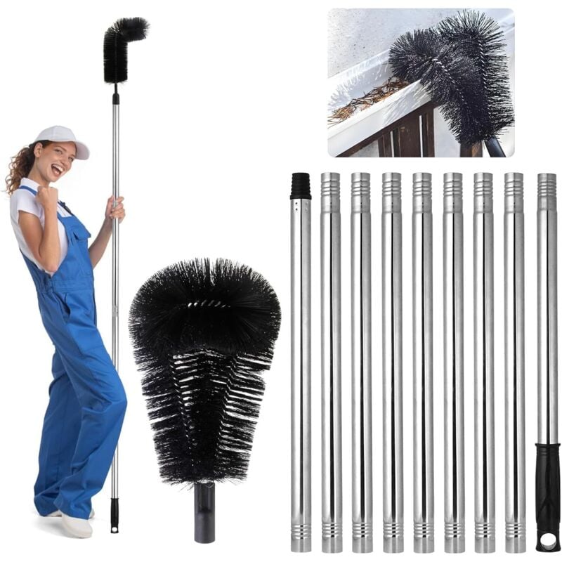 Outils télescopiques pour le nettoyage des gouttières, nettoyeurs de gouttières au sol, nettoyeur de gouttière avec brosse de nettoyage , outil sûr pour nettoyer les gouttières. Facile m