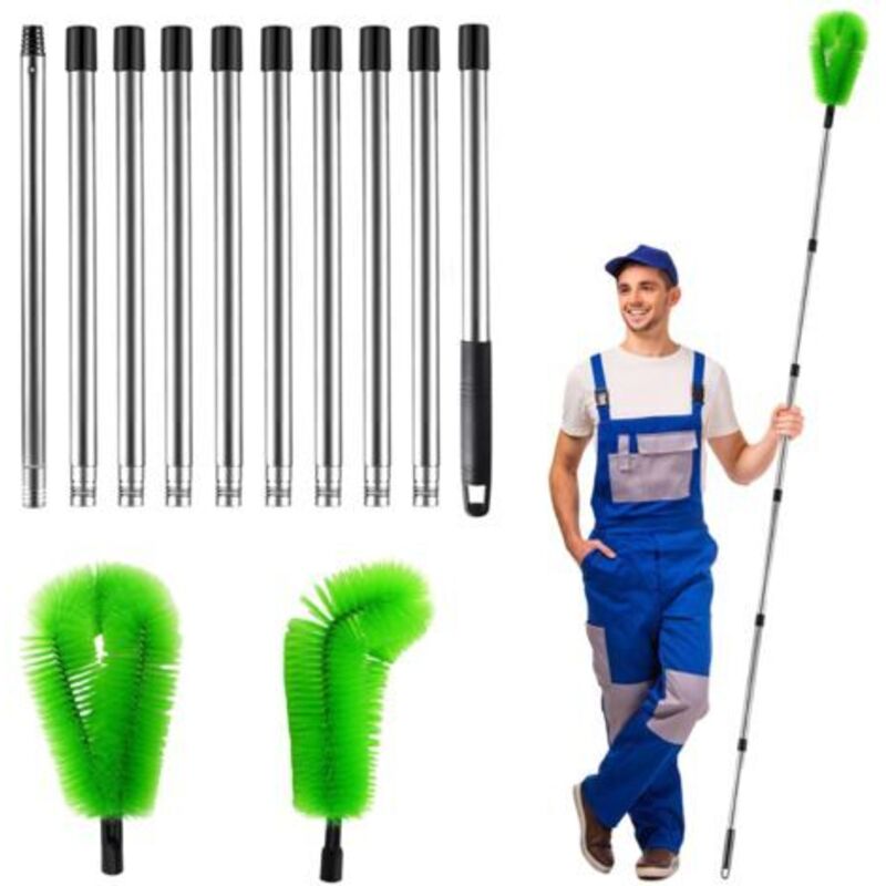 Qivine 400cm Outil de Nettoyage de Gouttière de Manches, Nettoyeur de Gouttière avec 13 Poteaux Extensibles, Angle Réglable, Brosse de Nettoyage pour Nettoyer Les Feuilles, la Neige, la Saleté