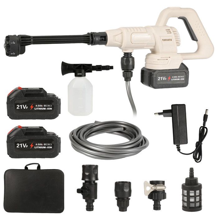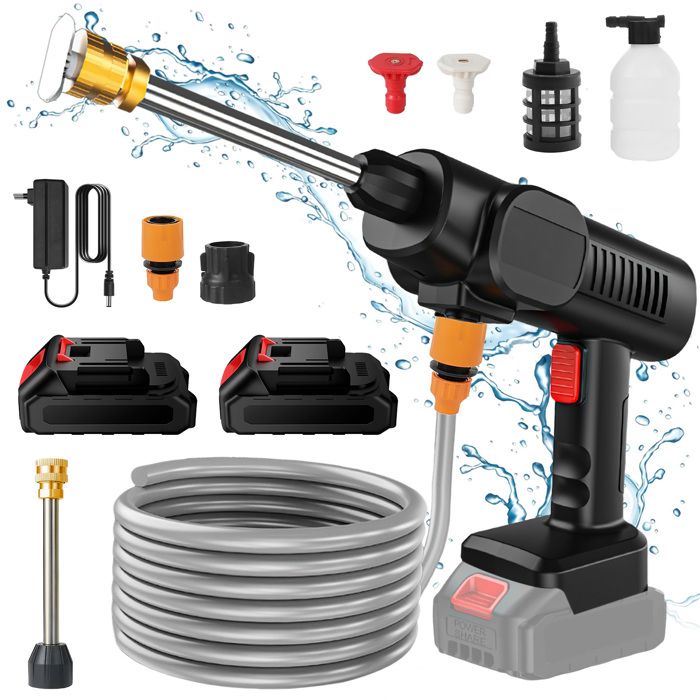 Nettoyeur haute pression sans fil 21V – 6-en-1 buse 30 bars 2 batteries 3 modes compatible Makita jardin & voiture