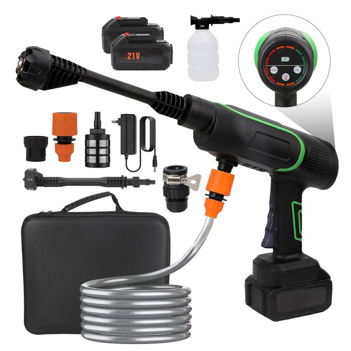 Nettoyeur haute pression sans fil compatible avec batterie Makita 18 V, nettoyeur haute pression portable 6 en 1, 2 vitesses avec écran LED, tuyau de 5 m, buse 6 en 1, filtre, bouteille en mousse