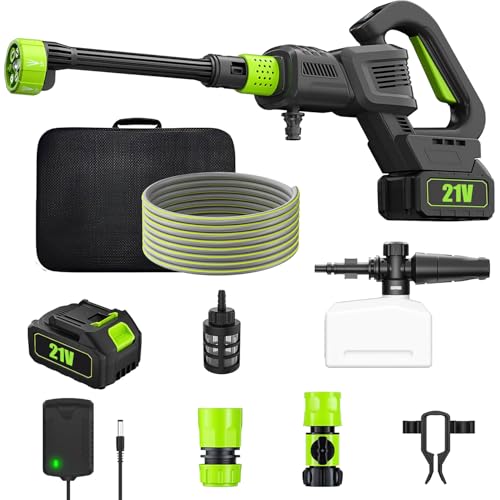 Nettoyeur Haute Pression sans Fil 980PSI Portable sur Batterie, Pistolet Hydrojet avec 6-in-1 Buse, 5M Tuyau, Pot en Mousse, Nettoyeur Électrique pour Voiture Jardin Terrasse (B - 2 Batterie)