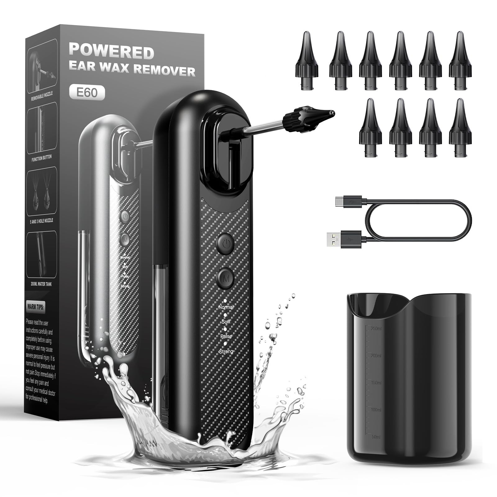 Nettoyage Oreille Electrique 2 IN 1 Douchette Nettoyeur Oreille éTanche IPX67 3 Modes de Nettoyage et 11 Embouts Auriculaires