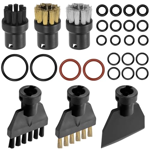 CiShow Lot de 6 accessoires de nettoyeur vapeur compatibles avec Kärcher, brosses rondes, plates en nylon et laiton, nettoyeur vapeur à main, pelle en plastique, brosse métallique pour meubles de