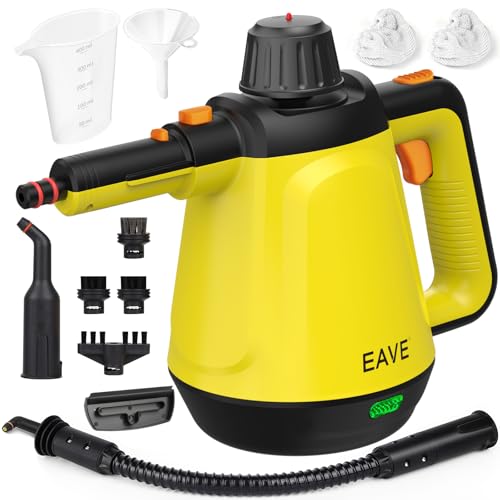 Nettoyeur Vapeur Portable, 110℃ Nettoyeur Vapeur à Main pour un Nettoyage Efficace, Polyvalent Vaporetto avec 10 Accessoires et Câble 5m pour Canapés, Tapis, Joints, Nettoyage sans chimie (Jaune)
