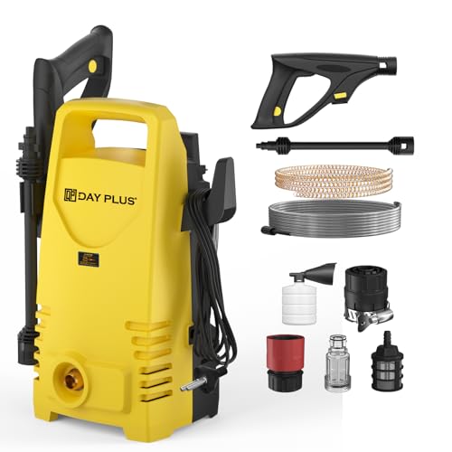 HSHa Nettoyeur haute pression pour voiture, nettoyeur haute pression électrique 1100 W, tambour de tuyau, kit 55 bar et buses réglables à 180°