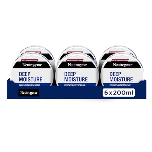 Neutrogena Deep Moisture Lot de 6 tubes de crème hydratante non grasse avec 10% de glycérine et de technologie Pro-Ceramide pour une hydratation intense pendant 72 h