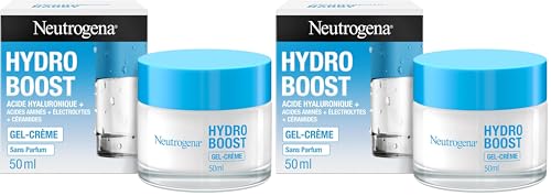 Neutrogena – Gel-Crème Hydro Boost (Pot de 50 ml) – Crème Hydratante pour les Peaux Sensibles à l'Acide Hyaluronique et Tréhalose Botanique – Gel Hydratant pour Un Teint Frais et Éclatant (Lot de 2)