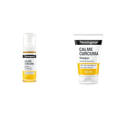 Neutrogena Lot de 2 | Mousse Nettoyante Calme Curcuma (flacon-pompe de 150 ml) + Masque Calme Curcuma (tube de 50 ml) à l'extrait de curcuma