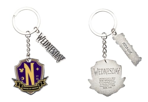 Konix Mercredi Porte-clés - Métal - Motif Nevermore Academy - Violet et jaune