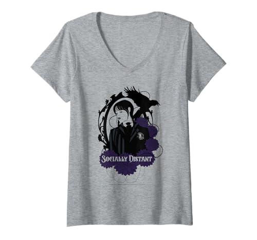 Femme Wednesday Socially Distant Nevermore Academy Poster T-Shirt avec Col en V