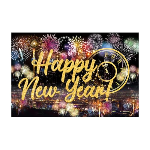 Uonguon Toile de « Happy New Year » - Impression 2D - Ballons dorés - 99,1 x 150 cm - Panneau Happy New Year 2026 - pour Bal de Fin d'année, fête de Vacances, Accessoires de Studio, terrasse