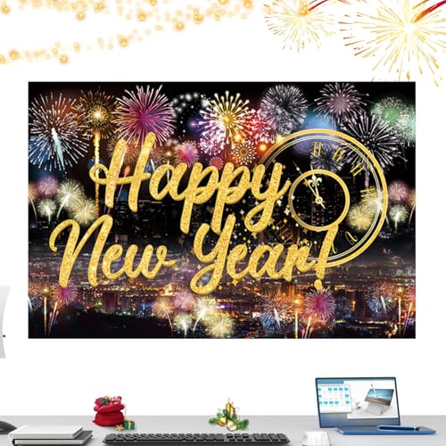Toile de « Happy New Year » – Bannière de ballons dorés avec impression 2D | 99,1 x 150 cm – Décorations murales pour le réveillon du Nouvel An 2026 – Pour bal de fin d'année, fête de vacances
