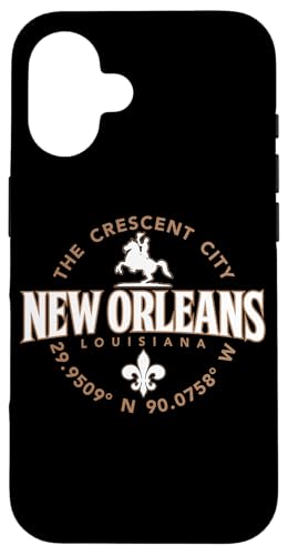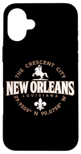 Étiquette de coordonnées New Orleans Louisiana The Crescent City Coque pour iPhone 16