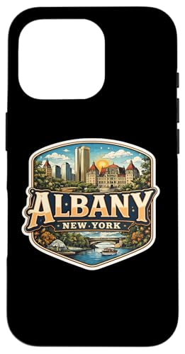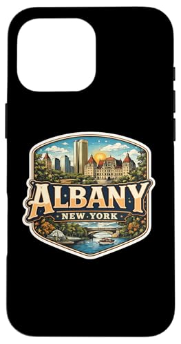 Albany, New York, Ville Souvenir, Capitale de l'État, rétro, Vintage Coque pour iPhone 16 Pro Max