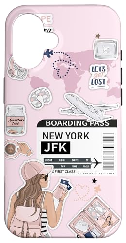Carte de Voyage pour l'embarquement en Avion à New York, Jolie Fille Qui Voyage Coque pour iPhone 16