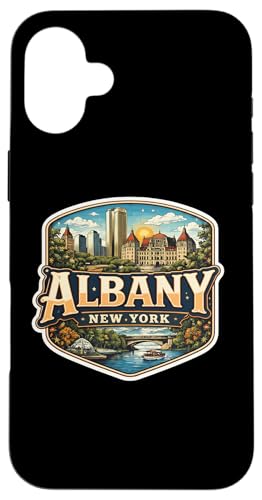 Albany, New York, Ville Souvenir, Capitale de l'État, rétro, Vintage Coque pour iPhone 16 Plus