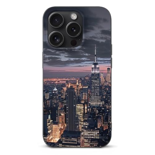 EMPYRI Coque de téléphone imprimée New York pour iPhone 15 Pro Max, ultra fine, résistante aux rayures et aux chocs, coque de téléphone en TPU noir, avec recharge sans fil, anti-jaunissement