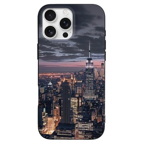 EMPYRI Coque de téléphone imprimée New York pour iPhone 16 Pro Max, ultra fine, résistante aux rayures et aux chocs, coque de téléphone en TPU noir, avec recharge sans fil, anti-jaunissement