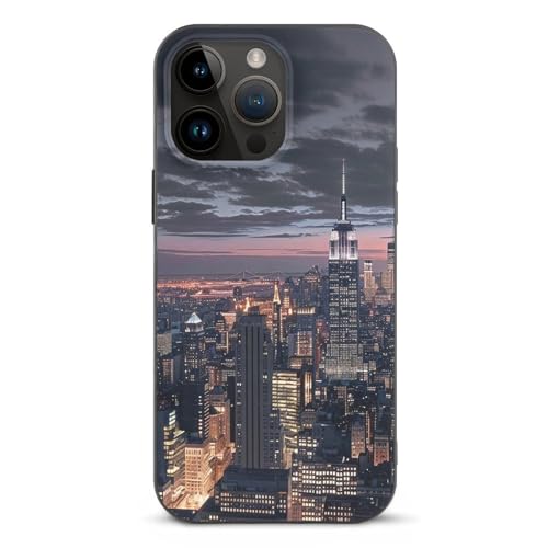 EMPYRI Coque de téléphone imprimée New York pour iPhone 14 Pro Max, ultra fine, résistante aux rayures et aux chocs, coque de téléphone en TPU noir, avec recharge sans fil, anti-jaunissement