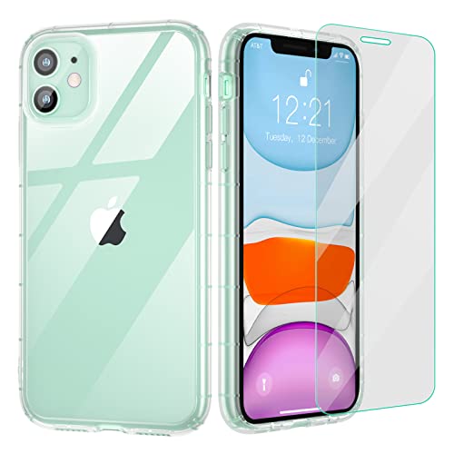 Poslocu [New] Coque Transparente iPhone 11 + Verre Trempé | Coque Anti-Choc en Silicone TPU Souple | Housse de Protection Renforcée | Étui Mince et Léger pour iPhone 11 6.1 Pouces - Crystal Clear