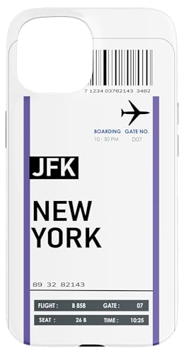 Carte d'embarquement de New York, accessoire de billet d'avion Coque pour iPhone 15