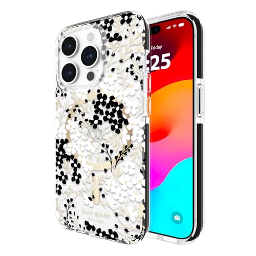 Kate Spade New York Coque pour iPhone 15 Pro, Compatible avec MagSafe – Motif Floral Multicolore Noir et Blanc