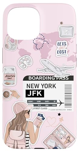 Carte de voyage pour l'embarquement en avion à New York, jolie fille qui voyage Coque pour iPhone 15