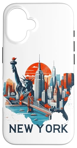 EMPYRI Coque de téléphone imprimée New York pour iPhone 16, coque de téléphone en TPU ultra fine, résistante aux rayures et aux chocs, avec recharge sans fil, anti-jaunissement