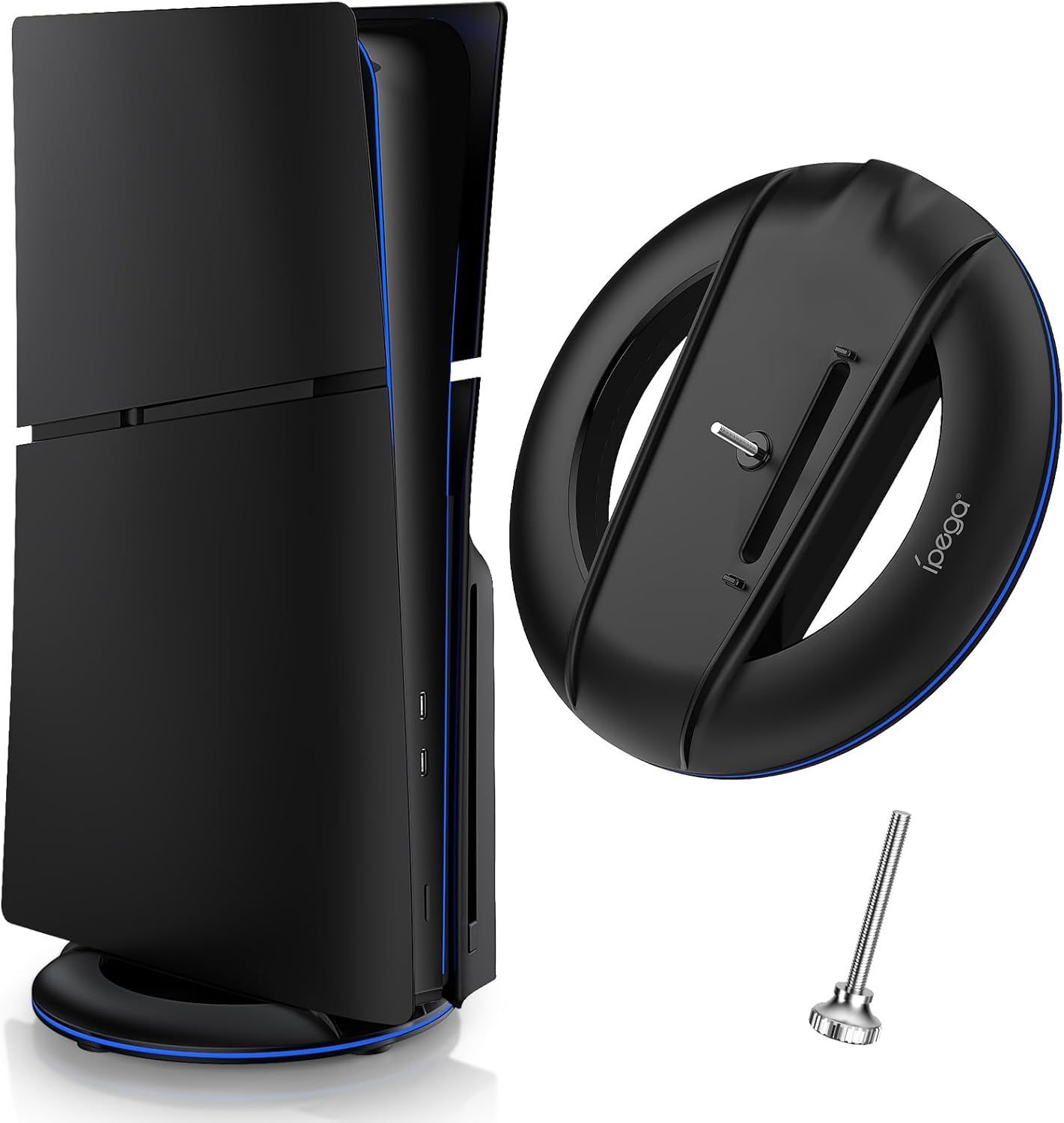 Support Vertical pour PS5 Slim Disc & Digital New Console, Socle Vertical pour PS5 Slim Accessoires avec Patin Antidérapant, Vis, Robuste et Solide (Noir)