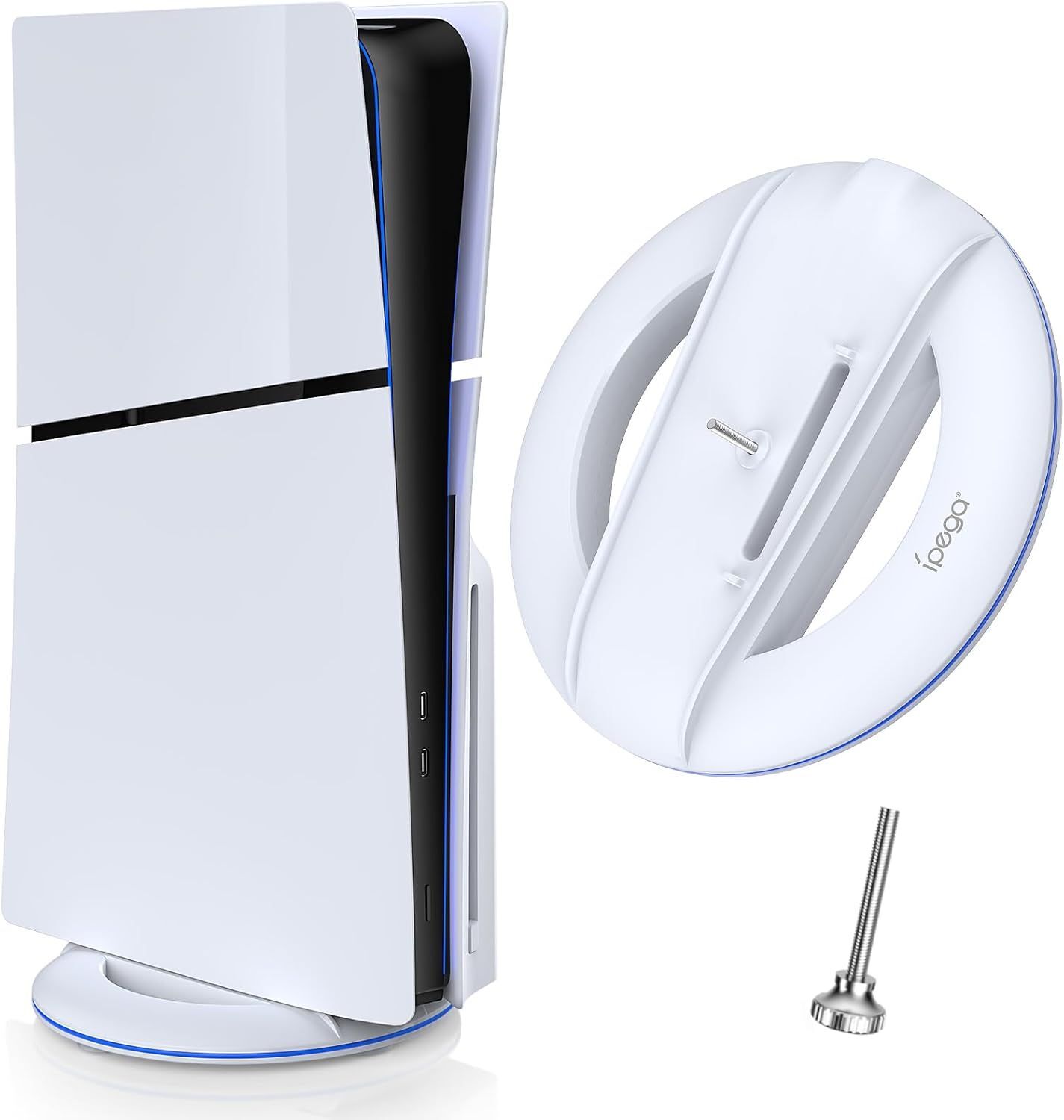 Support Vertical pour PS5 Slim Disc & Digital New Console, Socle Vertical pour PS5 Slim Accessoires avec Patin Antidérapant, Vis, Robuste et Solide (Blanc)
