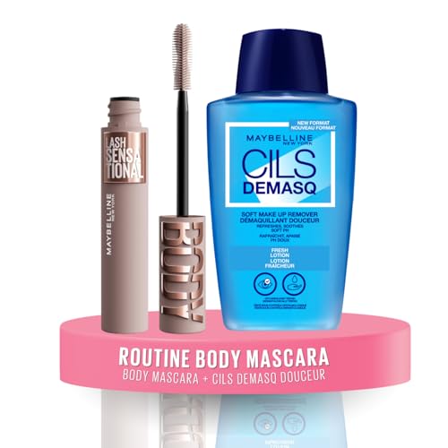Lot de Maybelline New York - Mascara Volume Sensationnel - Body - Teinte : Very Black - 9,75 ml + Maybelline New York Démaquillant Douceur Yeux - Cils Demasq