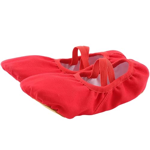 Chaussures de ballet pour filles - Confortables - Souple - Durables - Légères - Chaussures de danse à enfiler - Semelle en cuir divisée pour enfants, Rouge pastèque, 24 EU