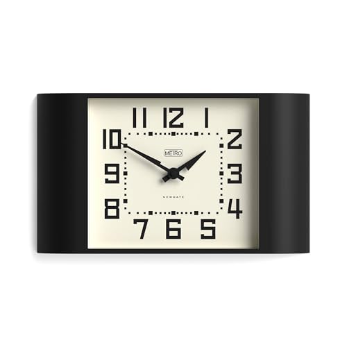 NEWGATE® Metro Horloge | Horloge Murale rétro | 42cm de Large | Noir | Style du Milieu du siècle pour Cuisine, Salon ou Bureau