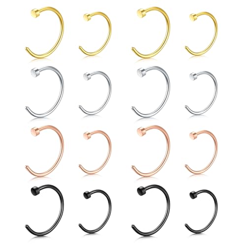 Incaton 0,8 mm 1,0 mm Titan Piercing de nez Anneau de nez 20G 18G Piercing de nez Nostril Nasal Mince Bijoux du nez Diamètre intérieur 6/8/10/12 mm, Métal