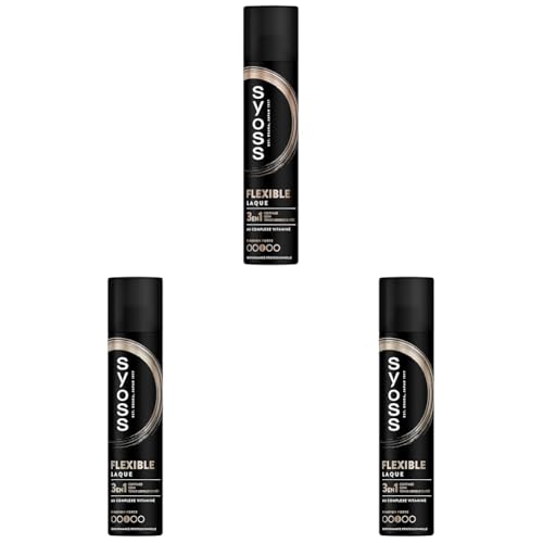 SYOSS, Laque, Tenue Flexible, 3en1, Coiffage, Soin, Tenue longue durée, Formule au complexe vitaminé, Provitamine B5, Niacinamide, Fixation forte, Performance Professionnelle, 300ml (Lot de 3)