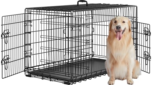Yaheetech Cage pour Chien Pliable Caisse de Transport pour Chien en métal Niche pour Chien Exterieur Interieur 2 Portes Verrouillables et Plateau Amovible Cage de Chiot 92x56.5x63cm