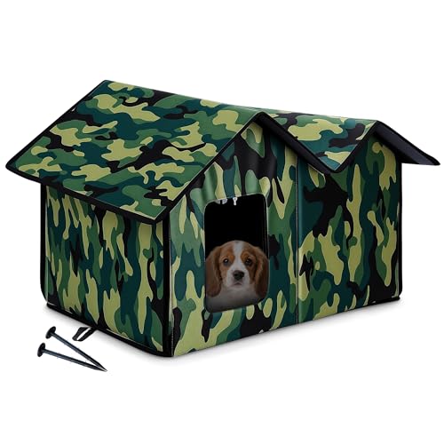 ALLSOPETS Niche pour Chat Extérieur Imperméable, Abri Chat Extérieur Hiver Étanche et Pliable, Maison Chaude pour Chats ou Petits Chiens (Camouflage)