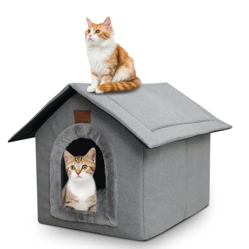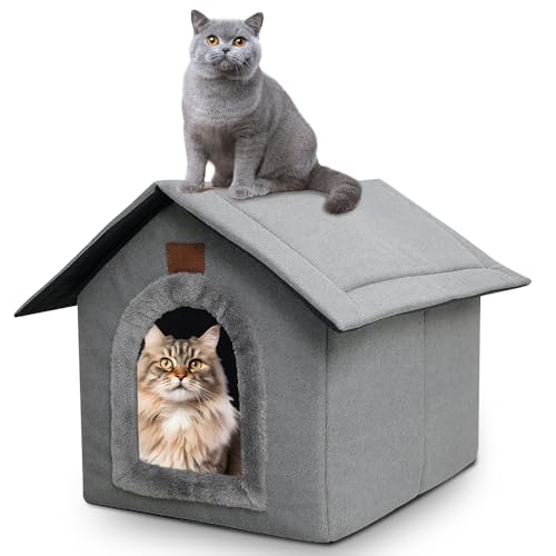 Maison pour Chat Hiver, Niche pour Chat Exterieur isolée Hiver, abri pour Exterieur avec cabane, Niche Chat Exterieur résistante pour Chiens, Chats, Lapins