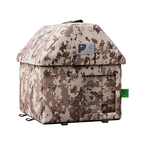 VALICLUD Niche pour Chat Extérieur Isolée Hiver en Tissu Camouflage Désert S avec Tapis Amovible Doux, Abri Surélevé Résistant aux Intempéries, pour Refuge et Protection Extérieure