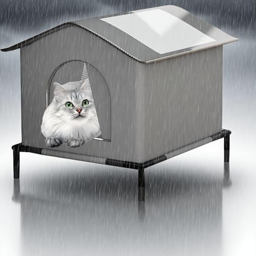 Niche pour Chat ExtéRieur IsoléE Hiver, Abri ImperméAble RéSistant Au Vent avec Base SuréLevéE – Maison Chauffante pour Chats Domestiques Errants,Tente d'extérieur d'hiver chaleureuse, imperméable, ré