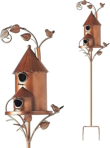 Riuulity Nichoir à Oiseaux en Métal Durable avec Piquet, Installation Facile, Décoration de Jardin pour Paysage de Parc (A)