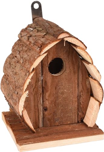 relaxdays Nichoir d’extérieur pour Oiseaux, Bois, avec écorce, à Suspendre, Trou d’envol, HLP 20x16,5x16,5 cm, Nature